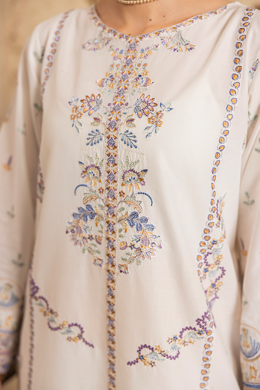 Paired with a soft organza dupatta with an apple silk finish for a smooth fall and subtle shine, along with a matching cotton trouser to complete the ensemble. Perfect for summer gatherings and semi-formal occasions.