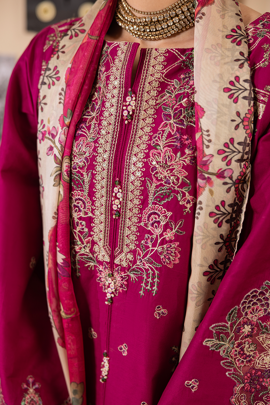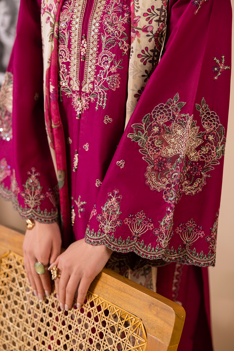 Victoria – Luxury Pret (3PC) is a sophisticated summer ensemble crafted for elegance and comfort. The breathable cotton shirt features intricate embroidery with delicate 3D accents, giving it a polished and refined look.