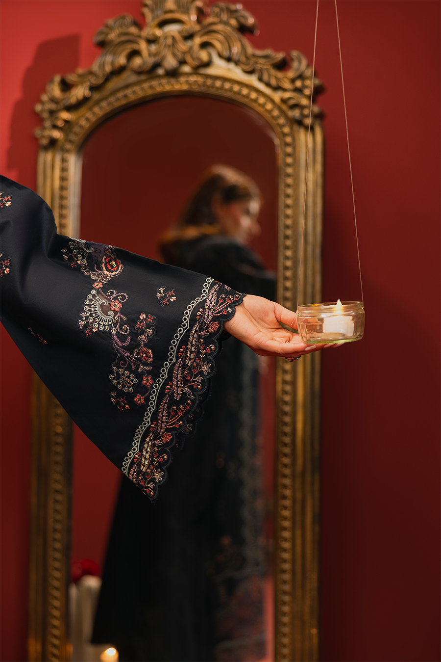 Paired with a delicate organza bordered dupatta with a soft apple silk finish, this 3-piece set offers a smooth fall and subtle shine. The matching cotton trouser completes the coordinated outfit, making it ideal for summer gatherings and semi-formal wear.